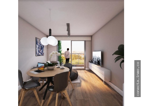 Living comedor con cocina integrada y salida a terraza